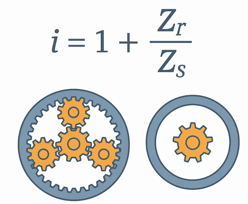 Formula pentru calcularea raportului de transmisie al unui reductor planetar nu este de fapt complicată. Cea mai comună structură este aceea că angrenajul solar este activ, inelul interior este fix și purtătorul de planete este scos. În această structură, formula de calcul a raportului de transmisie este: